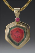 3-332-14 Watermelon Tourmaline 6.11ct tw Diamond .05ct tw