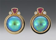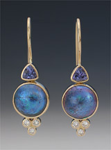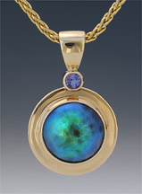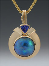 2-101-14 Abalone Mabe Pearl 11mm Tanzanite 3mm