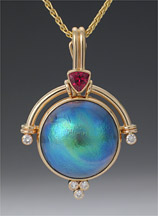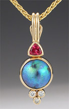 2-334-14 Abalone Mabe Pearl 9.5mm Spinel .26ct Diamond .072ct tw