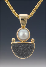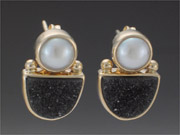 3-386-14 Black Druse 10x8mm Cultured Pearl 6mm