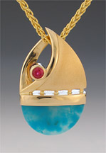 2-SAIL-14 Chrysocolla 14x5x10mm 5.85ct Pink Tourmaline 3mm