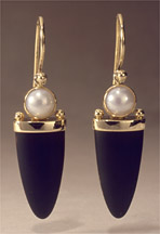 2-386-14 Black Matte Onyx 10x4x20mm Cultured Button Pearl 6.2mm