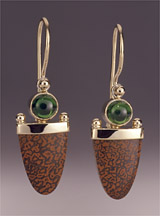 3-386-14 Fossilized Dinosaur Bone 10x4x14.5mm Diopside 5mm