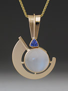 2-555-14 White Catseye Moonstone (N) 12mm 8.07c Tanzanite (E) .20c