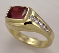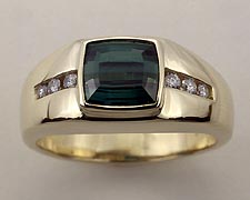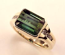 4-219-14 Green Tourmaline 9x7mm Diamond .18ct